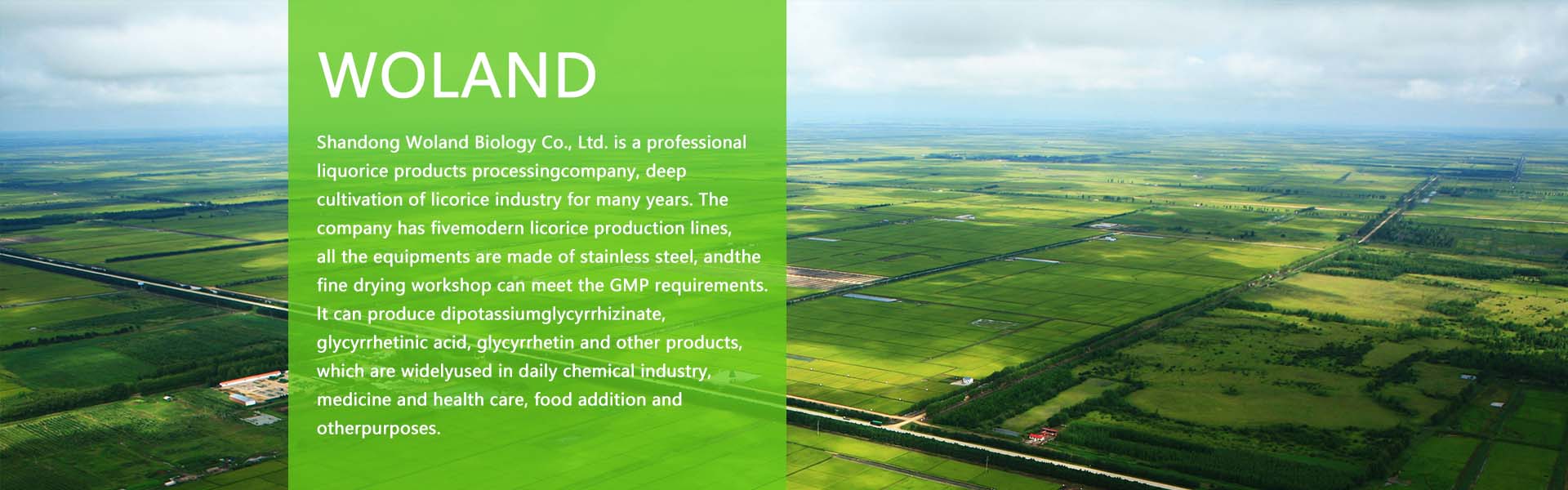 Shandong Woland Biology Co., Ltd. is a biotechnology company which combines research and development, production and distribution. We are located in the beautiful port city - Qingdao. Founded in 2015, the company always strives to provide safe, natural and healthy raw materials for health care products, pharmaceutical raw materials and cosmetic products for customers.……